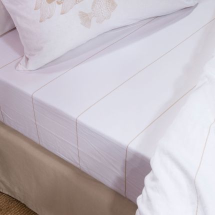 Делікатний візерунок у вигляді тонких горизонтальних смуг надає виробу сучасного й витонченого вигляду. Завдяки резинці по периметру простирадло щільно фіксується на матраці, не зсуваючись під час сну, і зберігає акуратний вигляд постелі.