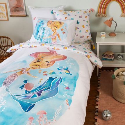 Комплект постільної білизни Calliopé з натуральної бавовни перенесе дітей у морський світ перед сном.