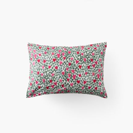 Дизайн наволочки — подвійний: з одного боку поверхня прикрашена дрібним малюнком у вигляді рожевих та червоних сердечок серед зеленого листя, що створює живий і грайливий ефект. Інша сторона вражає милим сюжетним принтом із кумедними котиками у сонячних окулярах і яскравими деталями у вигляді повітряних кульок та декоративних акцентів. Такий подвійний декор дозволяє змінювати настрій кімнати лише одним рухом — варто лише перевернути подушку.