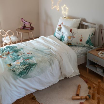 Підковдра FEERIES дозволяє відкрити для себе прекрасну вечірню історію. У цій двосторонній колекції із чарівними візерунками захований QR-код, що пропонує чарівну подорож у зимовий цирк. Перетворіть спальню вашої дитини на місце чудес за допомогою підковдри FEERIES.