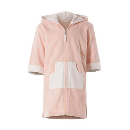 Халат-туніка дитячий належить до лінії KOALIN. Виготовлений з натурального велюру (100% бавовна), густиною 360 г/м². Виконаний у кольорі рум'ян. Модель має капюшон, прорізні кишені, довгі рукави та застібку-блискавку. Декорована вишивкою тематичного малюнка.