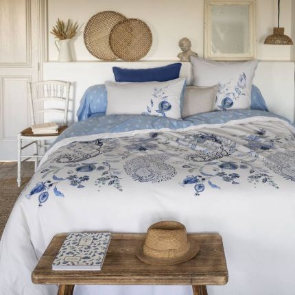 Підковдра MADELEINЕ відрізняється візерунками з кашеміру та наполегливим богемним духом. Дозвольте собі спокуситись лінією MADELEINЕ та її деталями, натхненими майстерністю: тасьма, візерунки з кашеміру та випрані матеріали, доповнені відтінками ностальгічного синього. Завдяки подвійному декору цей підковдра дозволяє змінювати настрій за своїм бажанням. Прийміть стиль заміського будинку з цим автентичним комплектом постільної білизни, який ідеально підходить для того, щоб принести у ваш будинок чудову пору року.