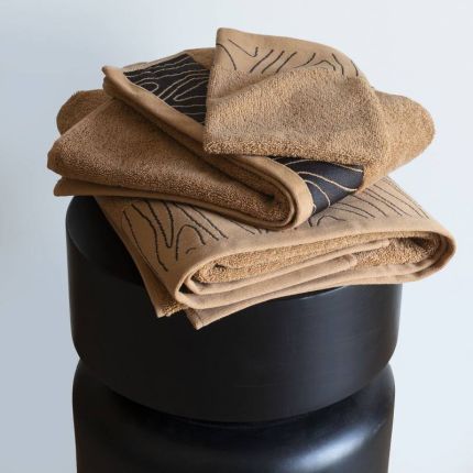 Запросіть природу у свій інтер'єр з лінією MONARBRE та її м'яким карамельним кольором. На цих банних рушниках гарні жаккардові візерунки, що ілюструють прожилки дерев, наче занурення в матеріал.