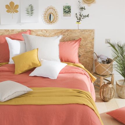 Особливість підковдри Songe — складається з двох матеріалів. Одна сторона — зі стираного льону з Фландрії 165 г/м², а друга — з бавовни 60 ниток/см². Він ідеально підходить для будь-якої пори року завдяки своїй терморегулюючій здатності, яка принесе вам свіжість влітку та тепло взимку. Дуже модний завдяки м'ятому вигляду, ви можете поєднувати його з іншими кольорами колекції Songe.