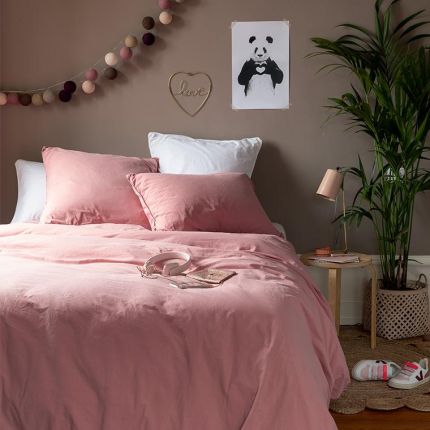 Дозвольте собі керуватися своїми бажаннями з простим комплектом постільної білизни Souffle: ви можете вибрати підковдру, натягнуте простирадло, простирадло та різні наволочки. Ця мінімалістична колекція зосереджена навколо трьох кольорів: кристально-білого, ніжно-пудрово-рожевого та каламутно-сірого. Ці стримані та позачасові відтінки легко вписуються в декор будь-якої спальні. У цій вишуканій колекції немає візерунків чи вишивки, а є проста плетена тасьма, яка прикрашає краї наволочек тон у тон. Набір створює м'який та заспокійливий образ, який готує вас до міцного нічного сну.