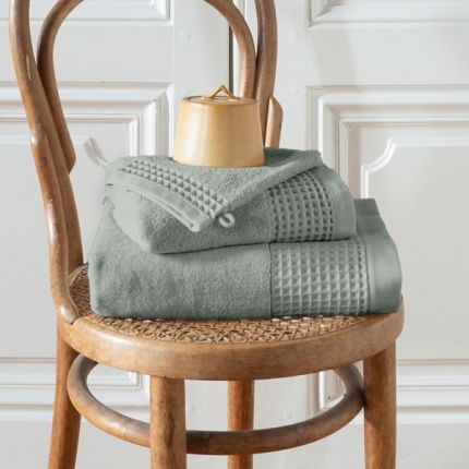 Якщо ви затятий захисник екології, зелений банний набір SOURCE вас порадує. Наділений етикеткою GOTS, він дозволяє вам поєднувати задоволення, комфорт та повагу до ваших екологічних та етичних переконань. Кольори доступні в ніжних монохромних м'яких та природних відтінках. Зроблені з щільної короткої махри банні або душові простирадла, міні та інші рушники або навіть мочалки з колекції SOURCE прикрашені ґратами у вигляді сот. Що стосується килимка для ванної SOURCE, його щільна і міцна тканина жакарда забезпечує приємну текстуру під ногами.