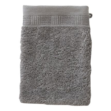 Рукавичка TITANE відрізняється елегантною жакардовою смужкою в тон. Виготовлена з бавовняної махри, прикрашена графічною вишивкою шикарного сірого кольору. Смілива та елегантна білизна, натхненна архітектурою.