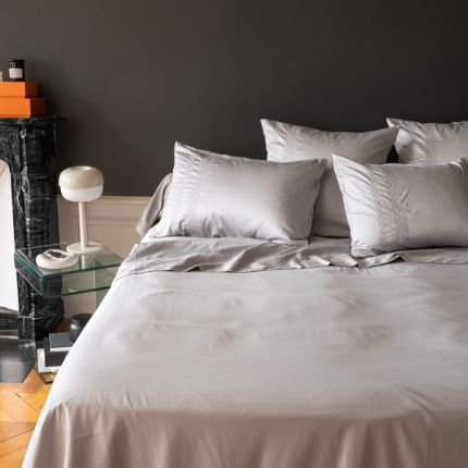 Постільна білизна TITANE із бавовняного сатину, прикрашена графічною вишивкою шикарного сірого кольору.